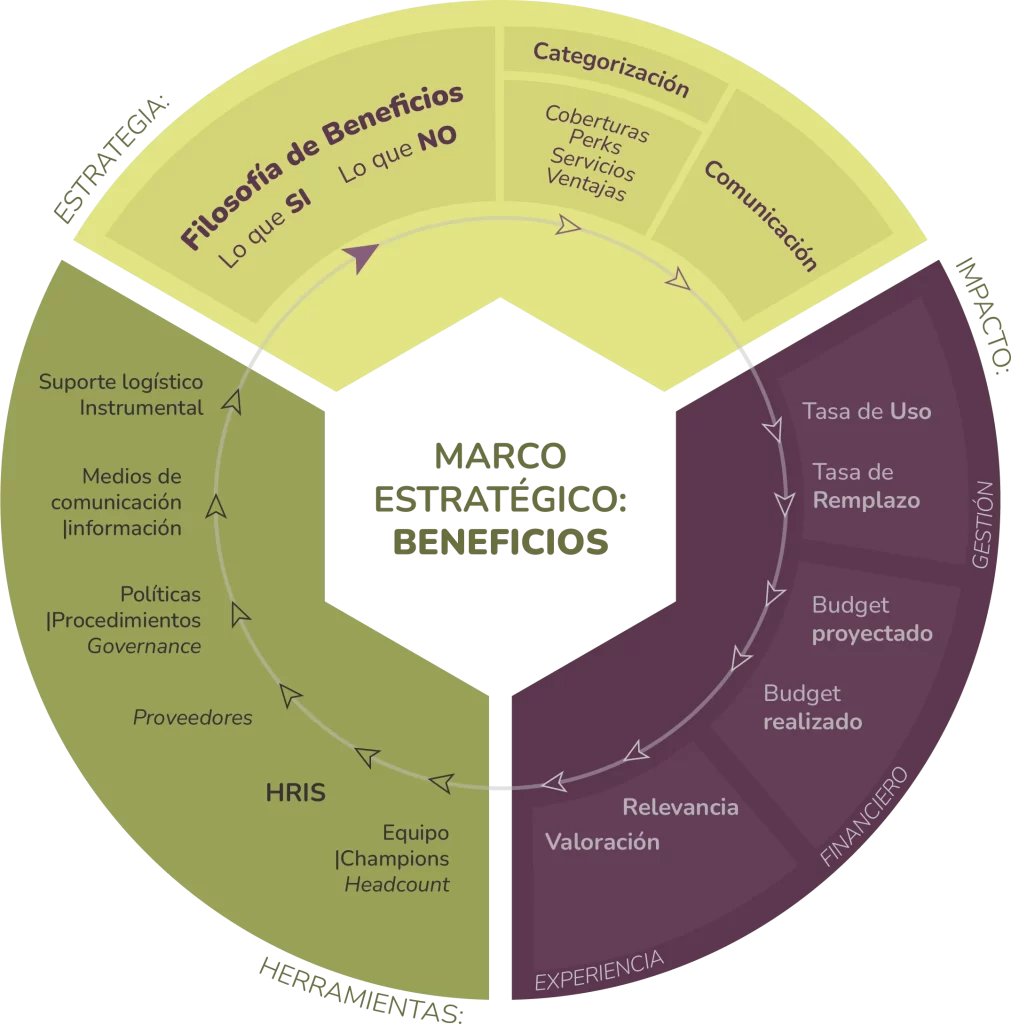 Los beneficios constituyen un amplio y diverso enjambre que incluye prestaciones, servicios y múltiples conceptos. Al analizarlos y compararlos, pueden diferir considerablemente en su naturaleza e impacto, lo que dificulta gestionarlos bajo un mismo marco conceptual. El enfoque de gestión basado en el diseño de experiencias aporta herramientas y conceptos que permiten una convivencia armónica entre estos elementos, otorgándoles mayor coherencia y alineándolos hacia un impacto tangible y concreto.